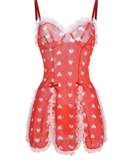 Red Embroidered Lingerie Set with Chain Tassel Belt