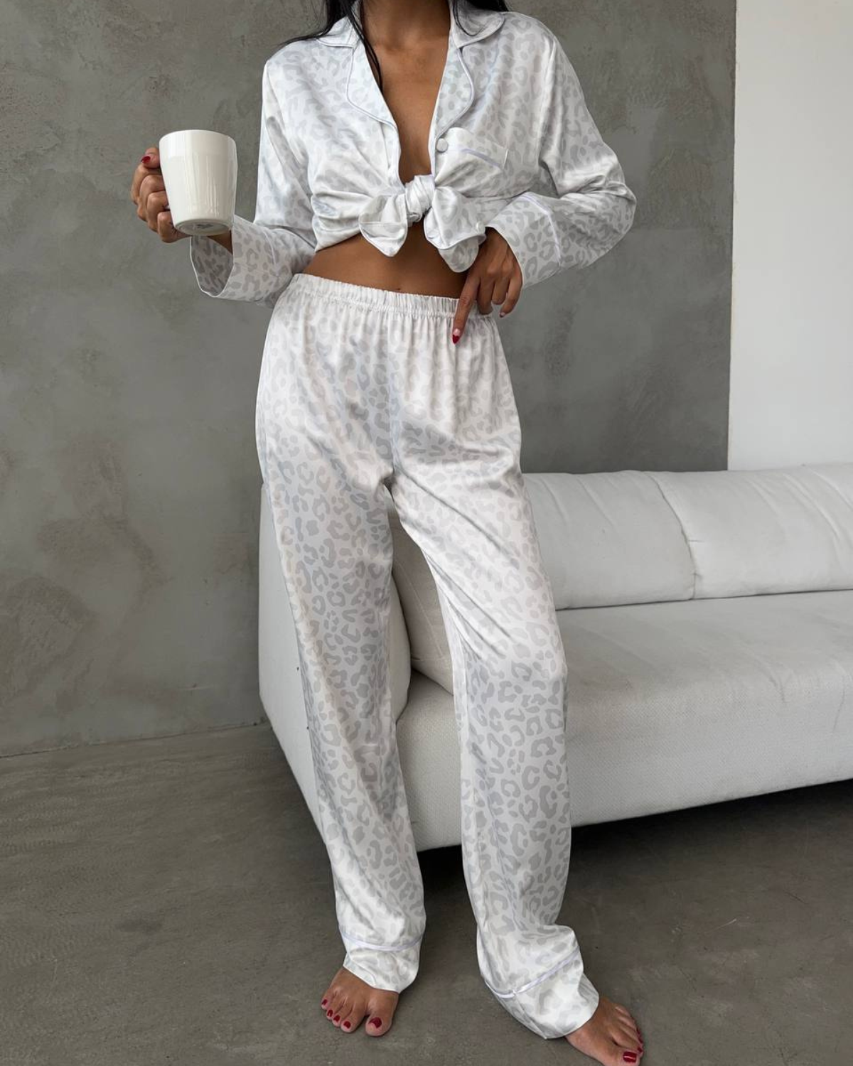 chic satin pajama set with a romantic twist. Black base with delicate pink heart prints, finished with contrast piping for