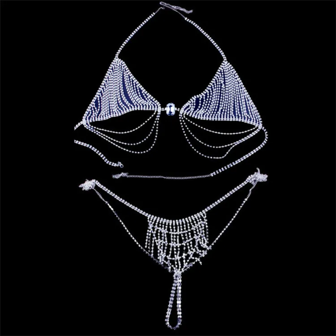 A dazzling lingerie set crafted from shimmering crystal chains.