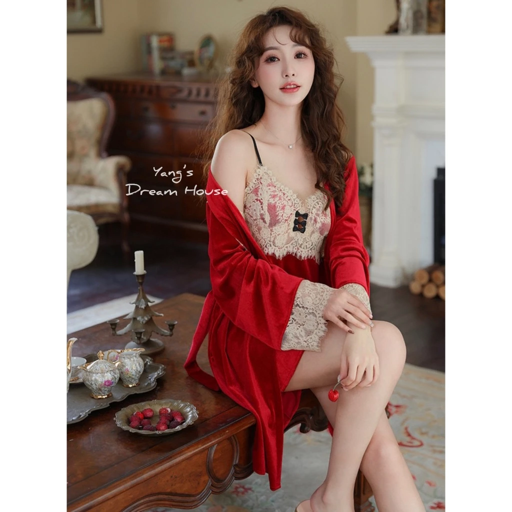 Velvet lingerie with robe
